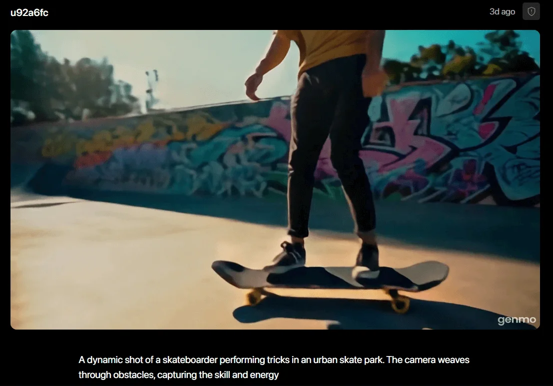 Genmo создает видеоролики по текстовому описанию. В нем можно настраивать стиль и динамику видео. А также — делиться своими генерациями с другими пользователями и вдохновляться их творчеством.