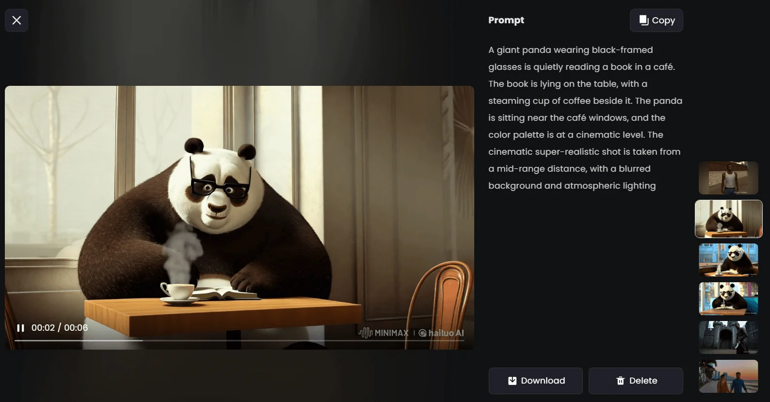 Minimax (hailuoai) — китайский генератор видео, который умеет генерировать видео по тексту или картинкам. На выходе получаются ролики длительностью до 6 секунд с частотой 25 кадров в секунду.
