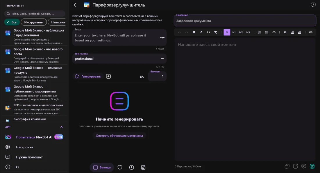 Условия использования: бесплатно доступно 3000 слов ежедневно.