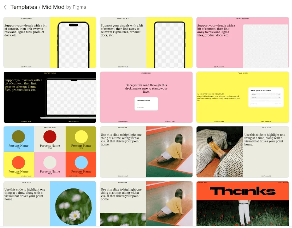 | Mid Mod | Яркий дизайн с акцентом на фото | В Figma Slides |