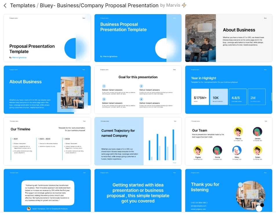 | Bluey | Минималистичный дизайн с графиками, схемами и цитатами | В Figma Slides |