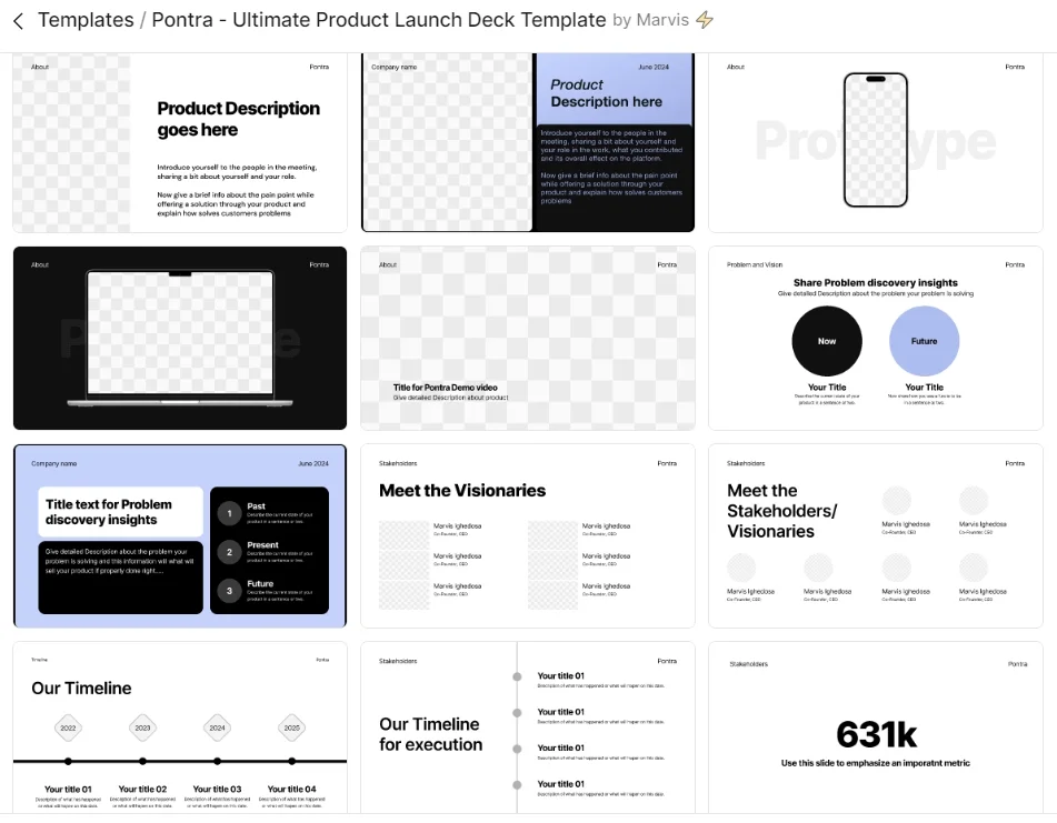 | Pontra Launch | Презентация продукта на мокапах, знакомство с командой, создание схем | В Figma Slides |