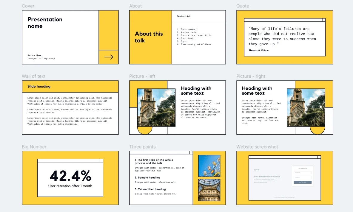 | Presentation Template и Just a Presentation | Демонстрация картинок и красивое оформление заголовков | В основном редакторе Figma |