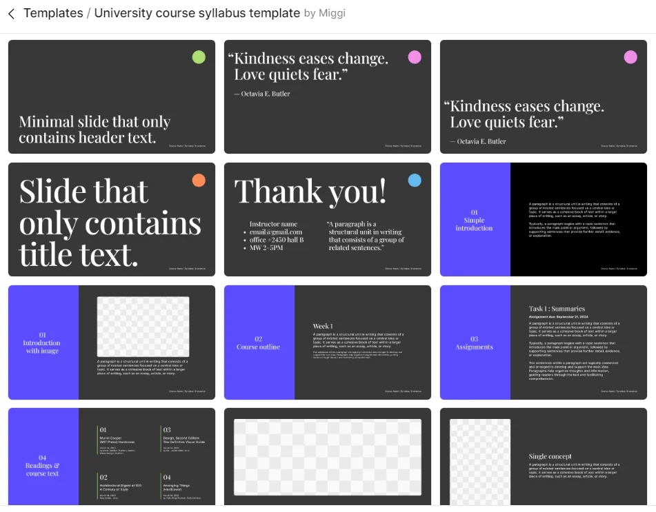 | University course syllabus | Минималистичный дизайн в темных тонах | В Figma Slides |