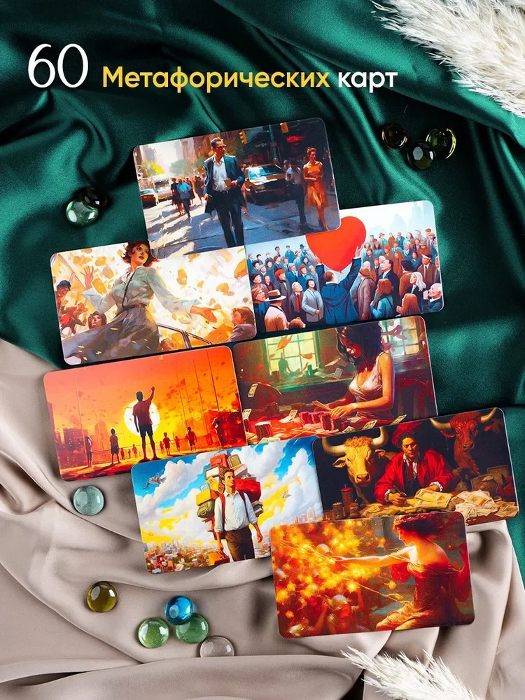 Фишки. Психологическая игра основывается на работе с МАК-картами — абстрактными изображениями, которые нельзя трактовать однозначно. А значит, для каждого игрока будет свой смысл. Например, для одного карта с мужчиной на велосипеде может быть про «упущенные возможности вкатиться в инвестиции», а для другого — вариант заработка через любимое хобби.