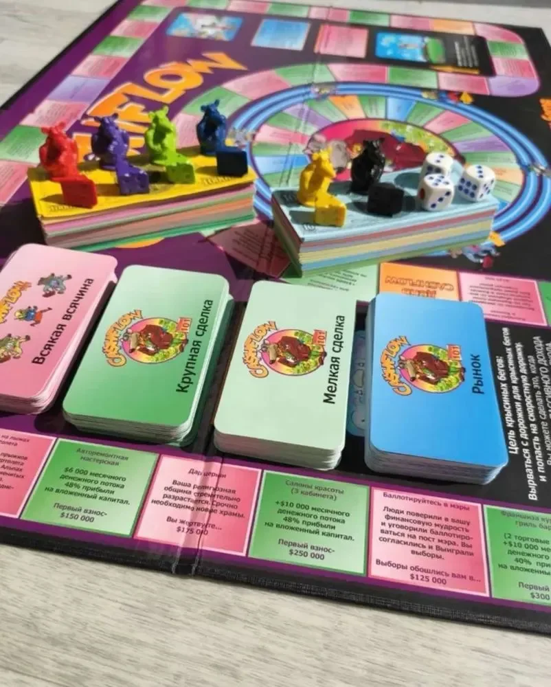 Фишки. Игру еще в 1993 году придумал автор книги «Богатый папа, бедный папа» Роберт Кийосаки. В отличие от «Монополии», она ближе к жизни обычного человека — вы платите ЖКХ, берете квартиру в ипотеку, пробуете инвестировать.