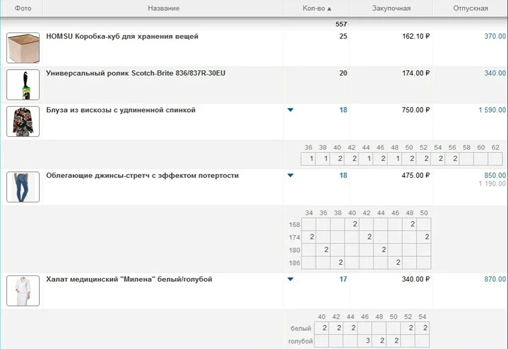 «Антисклад» — облачный сервис с инструментами для ведения учета, особенно удобен тем, кто продает одежду и обувь. Позволяет вести номенклатуру, контролировать остатки, формировать заказы поставщикам и создавать отчеты.