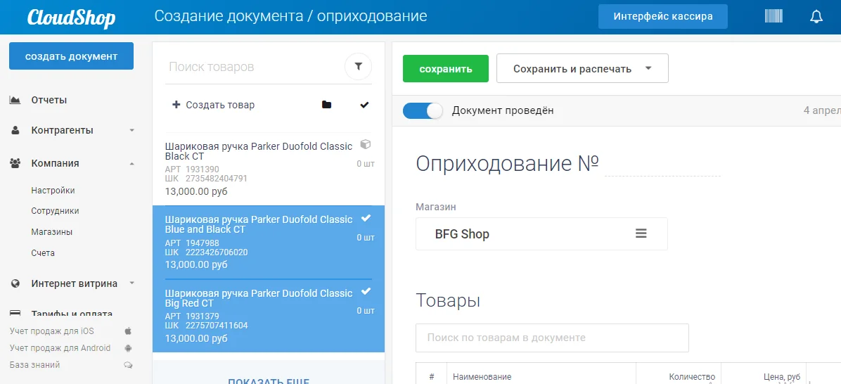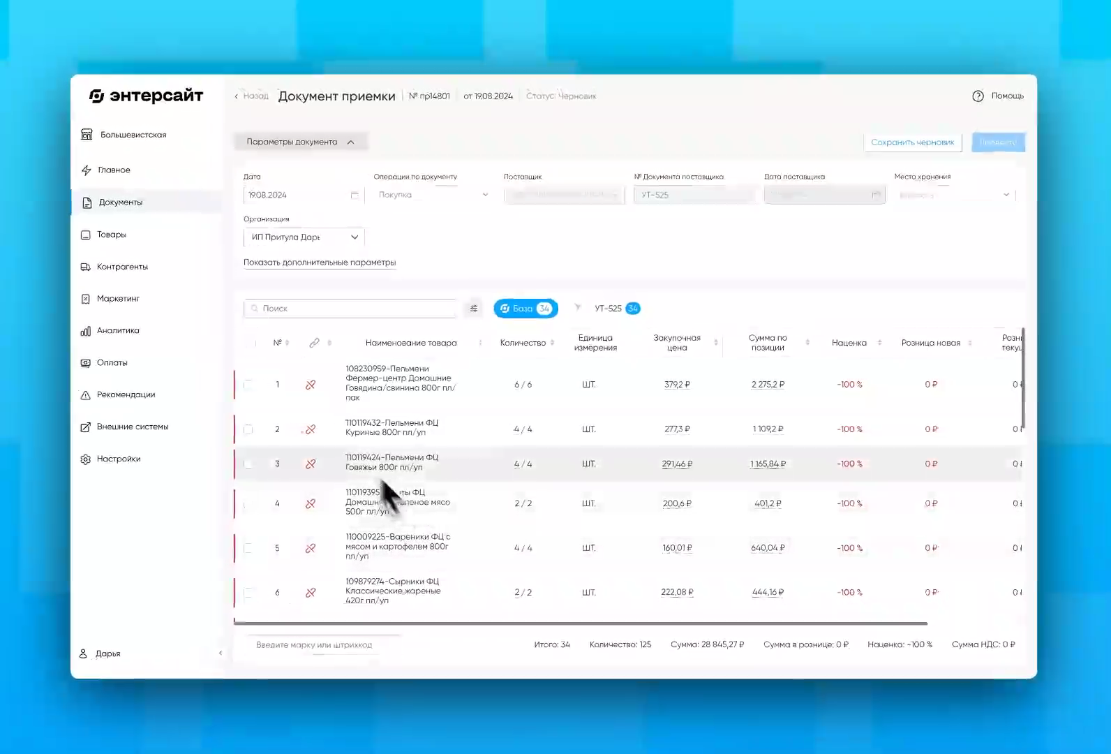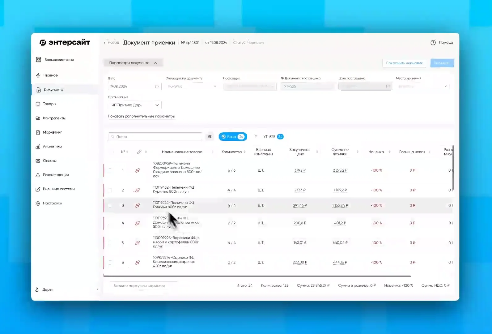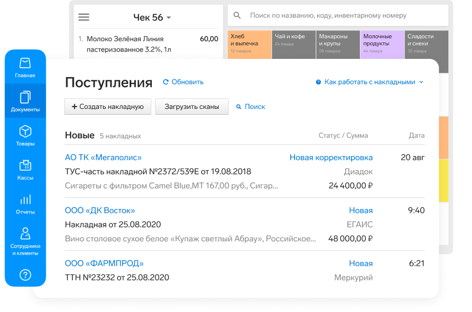 Чтобы автоматизировать операции. При приемке товара его не нужно вносить вручную — можно принять универсальный передаточный документ (УПД) или накладную в Excel, считать штрих-коды и данные подтянутся в систему автоматом. Сервис упрощает все операции: списания, возвраты, перемещения, продажи, инвентаризацию и передачу данных в госсистемы ЕГАИС, «Честный знак», «Меркурий».