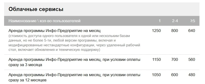 Цена. Примерно 4300 ₽ за пользователя. Чем больше сотрудников подключаете, тем ниже стоимость.