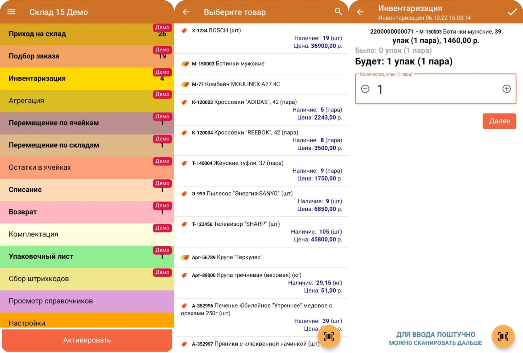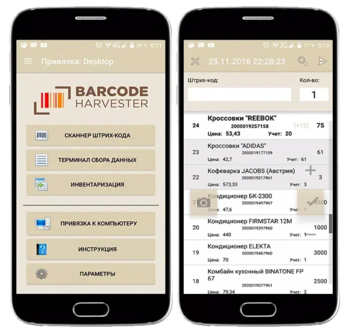 «Штрих-код Комбайн» не сменит складские программы для малого бизнеса, это приложение для проведения инвентаризации и сбора данных о товаре. Можно работать с весовым товаром и дробным количеством.