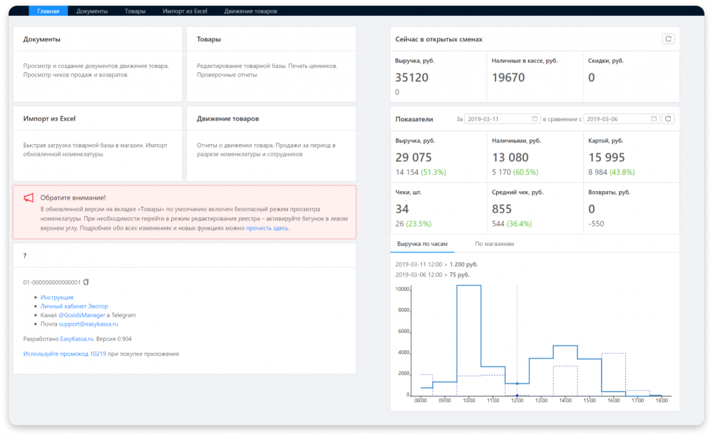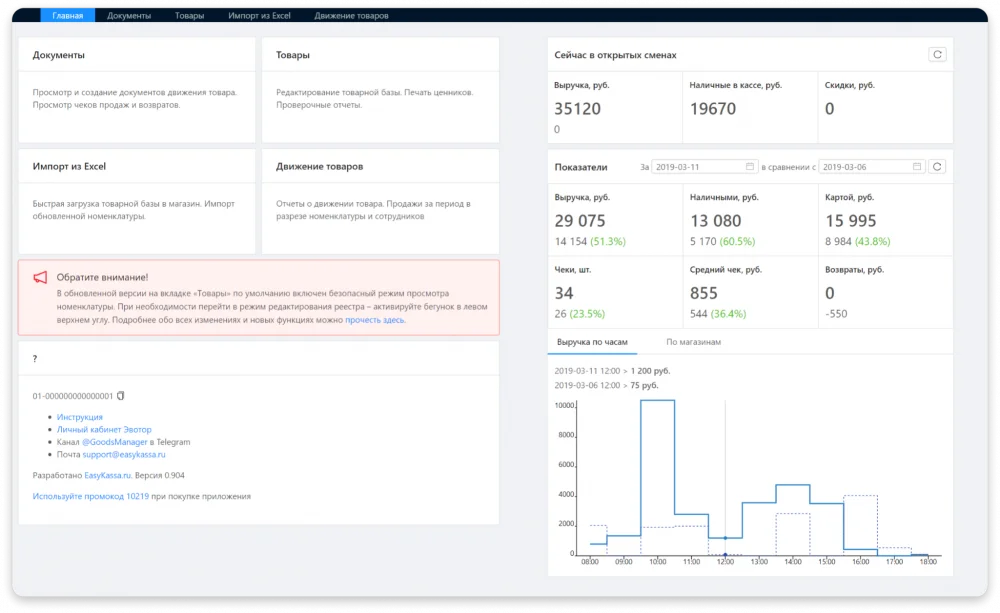 Сервис для управления товаром и продажами, который подходит для малого бизнеса. Помогает управлять одной или несколькими торговыми точками, работать с несколькими системами налогообложения на одной кассе.
