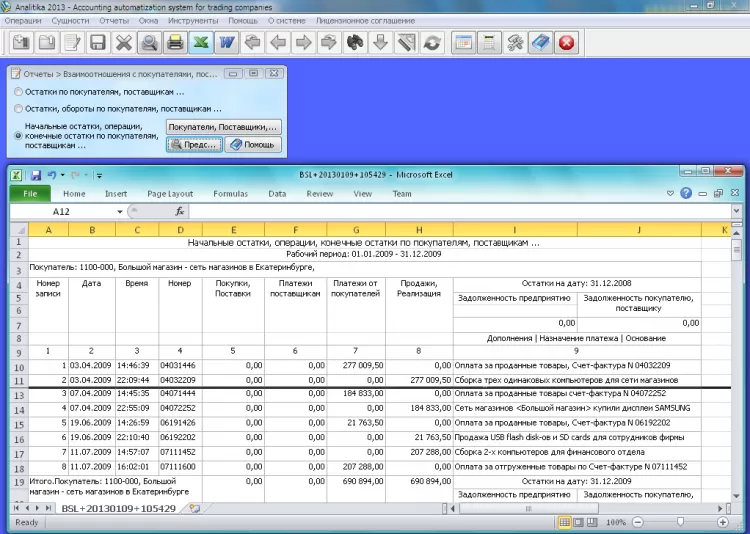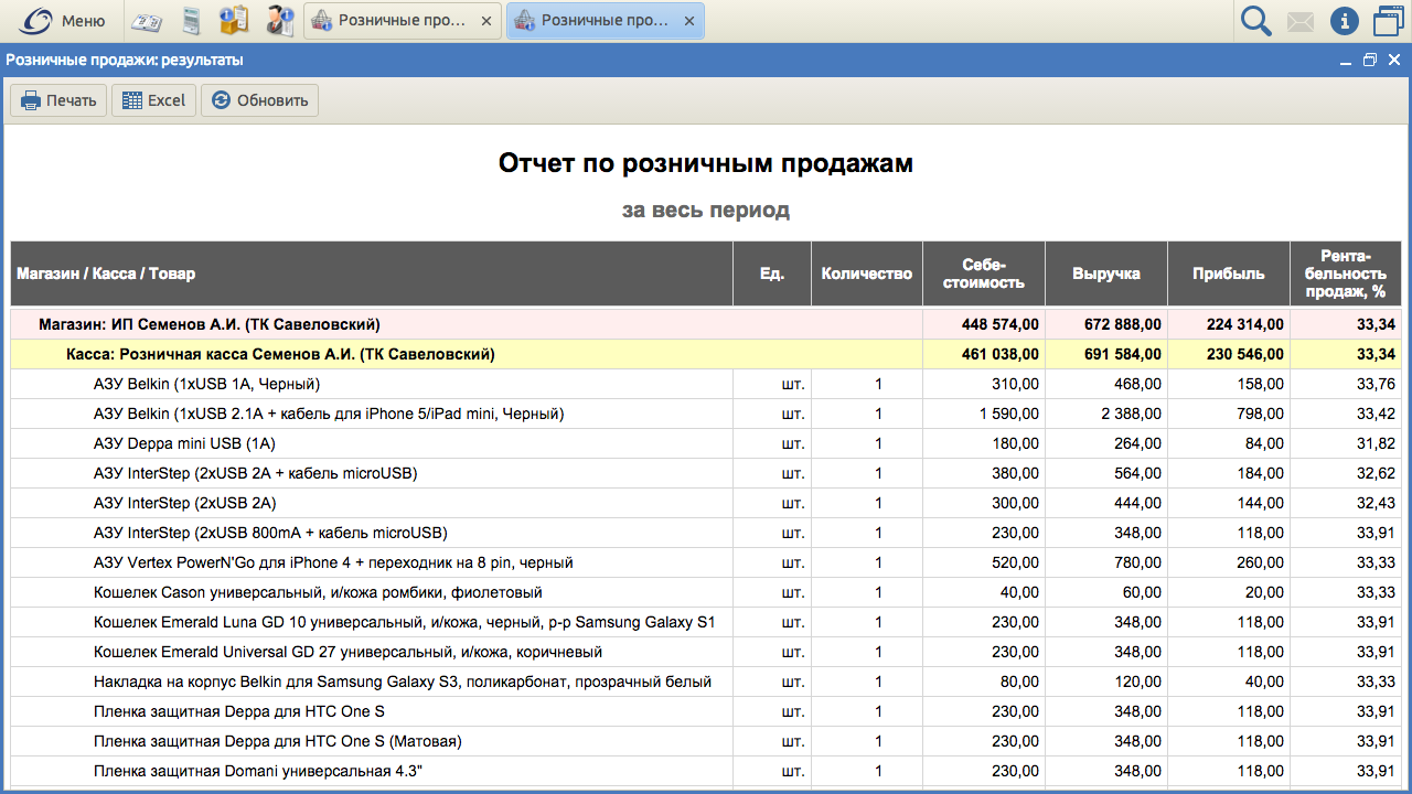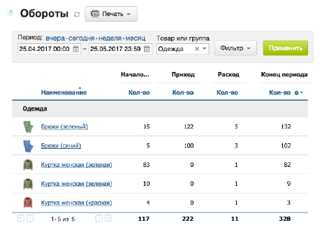 В системе учета продаж товаров есть конструктор отчетов для сбора нужных данных об операциях с товаром. В демоверсии доступно по 300 операций для каждого действия с товаром.