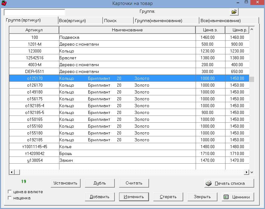 Массовые действия с товарами: редактирование, переоценка. Такие операции сильно экономят время.