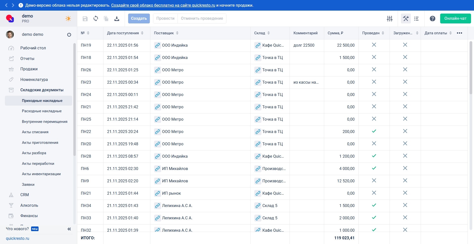 Складская программа учета товаров, в которой управляют своими товарными базами более 40 000 компаний. Сервис позволяет быстро добавлять новые позиции, контролировать все операции с товарами и финансовые показатели бизнеса, интегрируется с маркетплейсами. Отлично подходит для розницы, онлайн-торговли и работы в общепите.