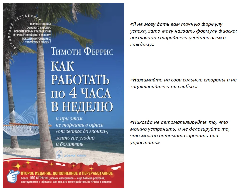 Популяризирует идею «хакнуть систему» и достичь большего, работая меньше. Предлагает практические советы по повышению продуктивности и оптимизации жизни.