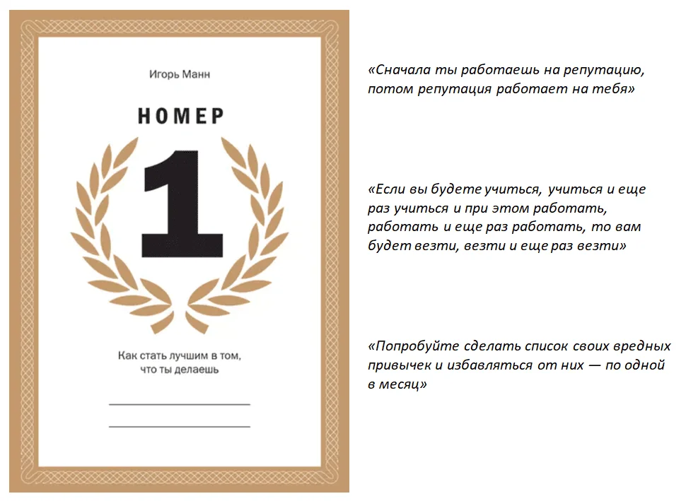 Автор мотивирует к достижению лидерства, как в профессии, так и в бизнесе. Игорь Манн описывает конкретные шаги по формированию репутации и своей позиции на рынке. Основой книги служит личный опыт автора, дополненный советами бизнес-гуру со всего света.
