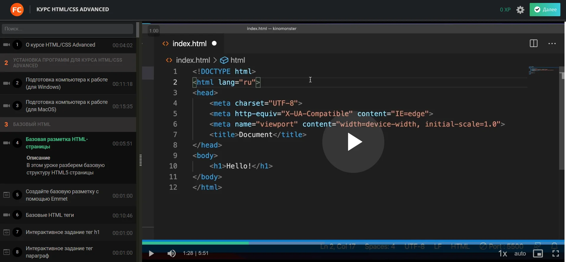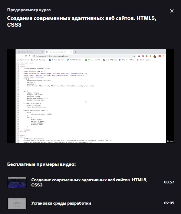 Dидеокурс, в котором закадровый голос объясняет происходящее на экране и рассказывает об основах HTML5 и CSS3.
