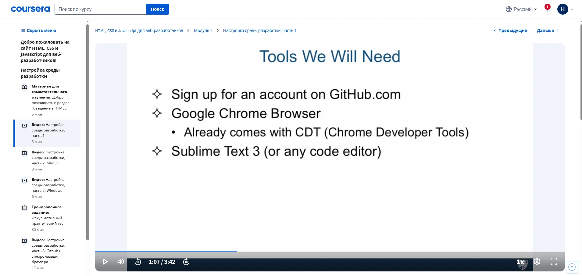 Сайт: https://www.coursera.org/specializations/html-css-javascript-for-web-developers#courses
