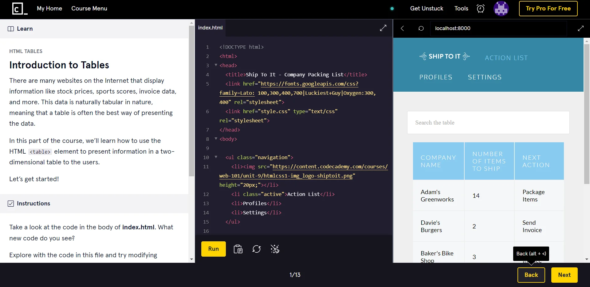 На Codeacademy есть 13 текстовых курсов, которые разбиты по уровням сложности: для начинающих и мидлов. Также они делятся на платные и бесплатные.
