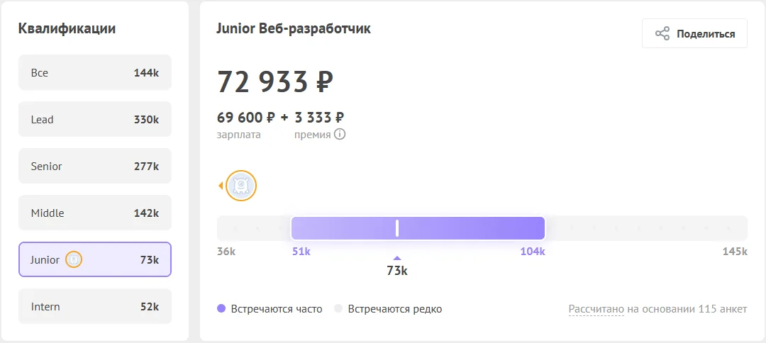 По данным Хабр Карьера, зарплата веб-разработчиков уровня Junior ― от 51 000 ₽ до 104 000 ₽. А Senior в среднем получает 277 000 ₽. Изучение HTML и CSS — один из способов войти в эту профессию. Но не только: языки пригодятся и редактору, и дизайнеру, и email-маркетологу.