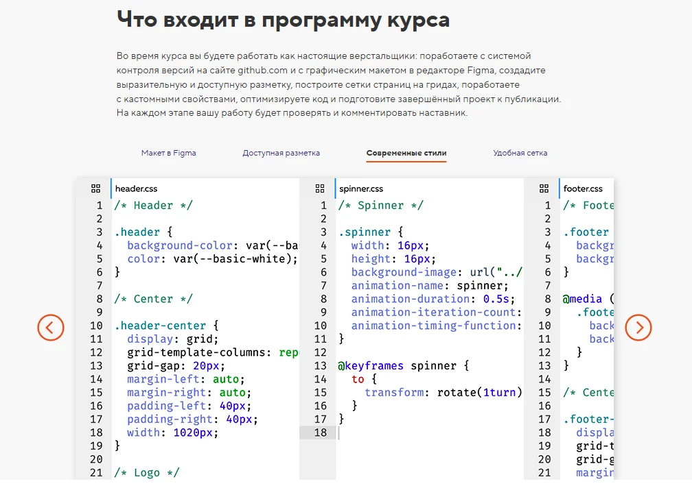 На курсе дают базу по HTML и CSS, учат верстать адаптивные страницы и работать с препроцессорами, рассказывают о Flex, Sass, Bootstrap.