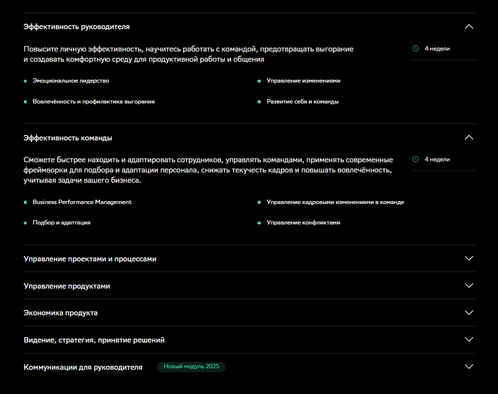 Чему научат: управлять эффективностью команды, выстраивать продуктивные коммуникации, нанимать и адаптировать сотрудников, создавать востребованные продукты, минимизировать затраты, разбираться в финансовых вопросах, принимать аргументированные решения.