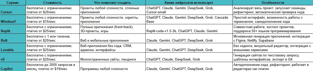 Но в обычных чат-ботах программировать неудобно — нужно постоянно копировать код, задавать специальные промпты и напоминать нейронке, что от нее требуется. Чтобы не тратить время на лишнее общение, можно использовать сервисы, которые заточены под программирование. Они используют разные нейронки под капотом и преследуют главную цель — сгенерировать код и показать, как он работает.