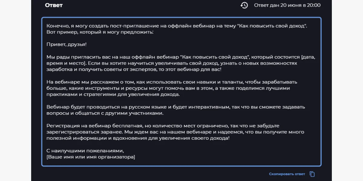 На самом деле, возможностей у сервиса больше. Главное — задавать боту правильные вопросы и максимально точно описывать свою задачу.