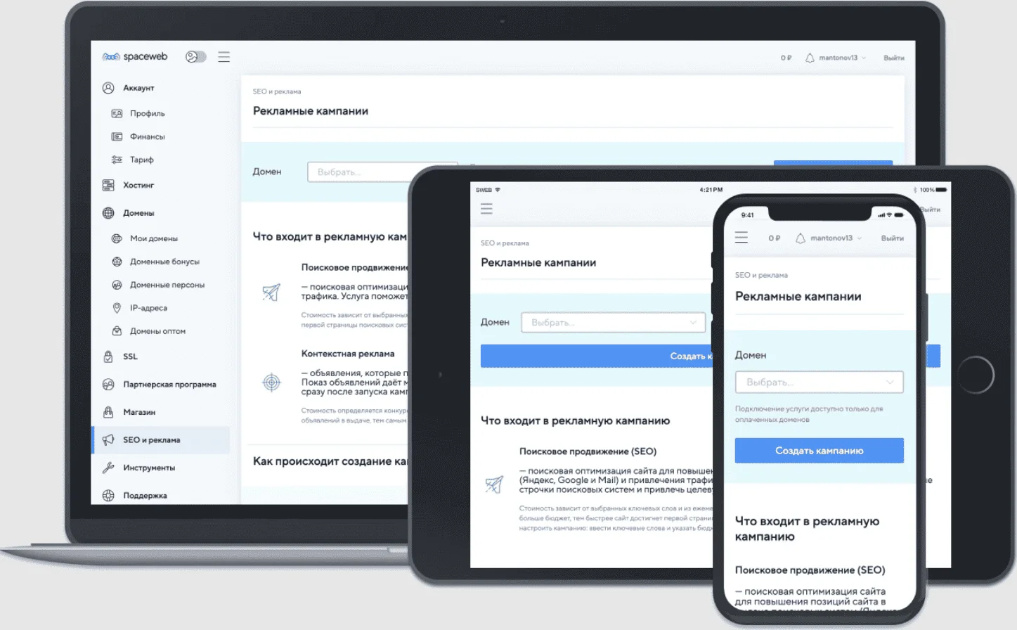 SpaceWeb размещает сайты, созданные в их конструкторе, а также помогает перенести проекты от других хостеров. Чтобы сайты были в безопасности, сервис делает ежедневные бэкапы, защищает от спама, вирусов и DDoS-атак.