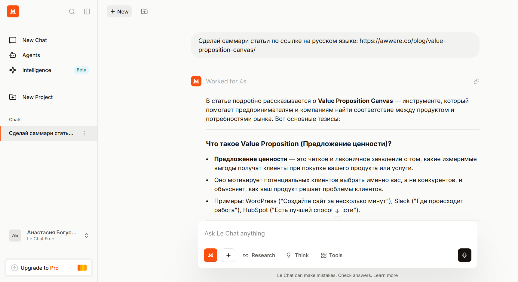 Le Chat также умеет сохранять контекст диалога, адаптируется под временную зону пользователя и соблюдает местные требования о конфиденциальности. Также он может открывать веб-страницы по ссылке, анализировать их содержимое и искать нужную информацию.