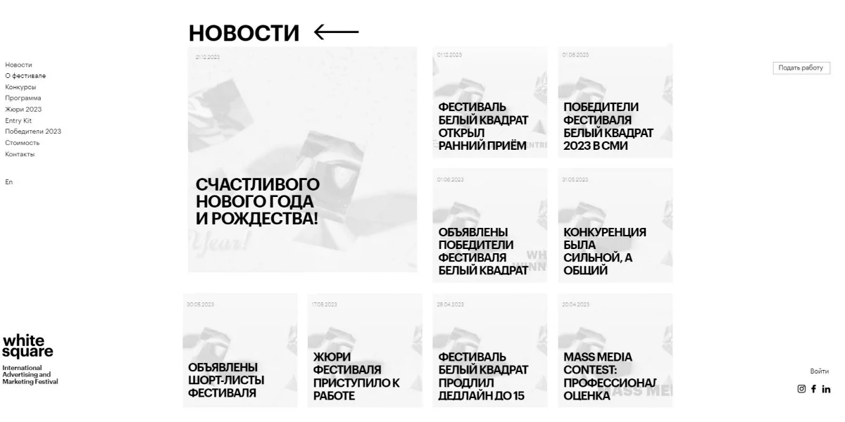 Один из крупнейших международных фестивалей маркетинга и рекламы в Европе. Создан в 2008 году. Конкурсы «Белого квадрата» охватывают весь спектр индустрии креатива, коммуникаций, маркетинга и брендинга.