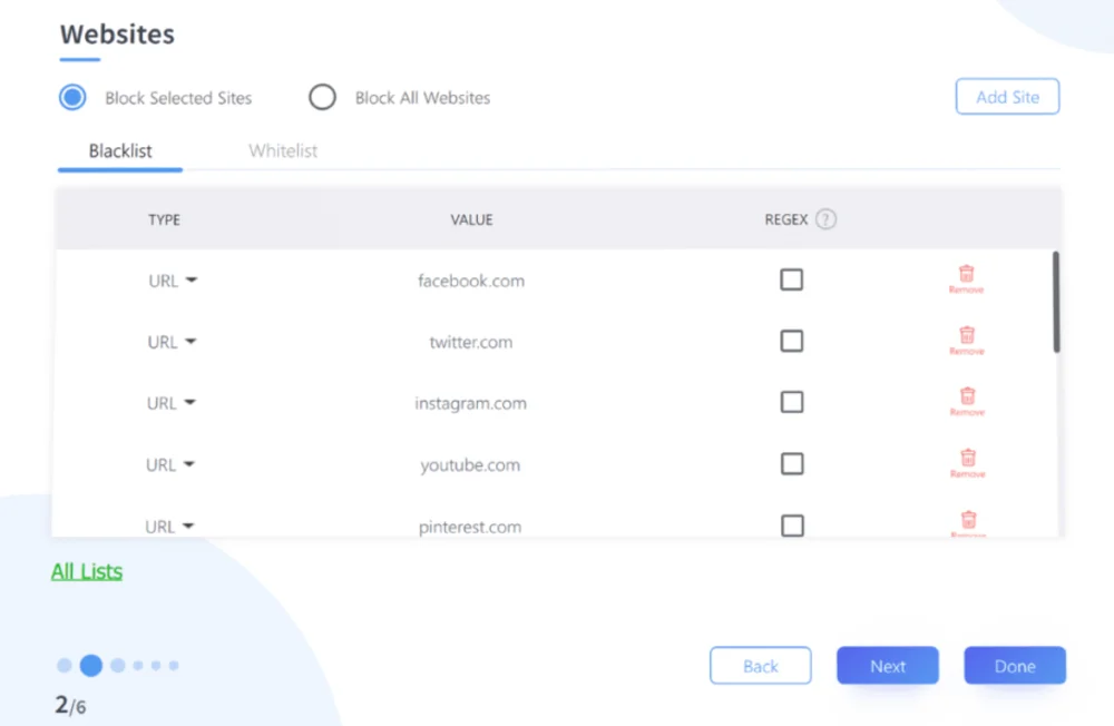 BlockSite — универсальный инструмент, который позволяет блокировать не только конкретные сайты, но и целые категории: соцсети, развлечения, игровые порталы. На мобильных устройствах он также ограничивает доступ к приложениям, а в браузере работает как расширение. Интерфейс простой, есть синхронизация устройств.