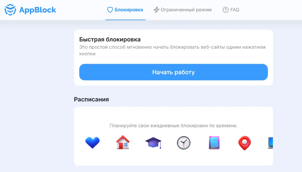 Функционал: блокировка сайтов и приложений, расписания, категории, ключевые слова, фокус-режимы.