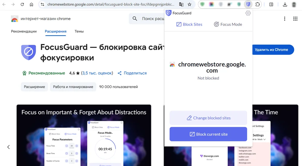 Ссылка: Website Blocker and Focus Mode (Chrome Web Store)