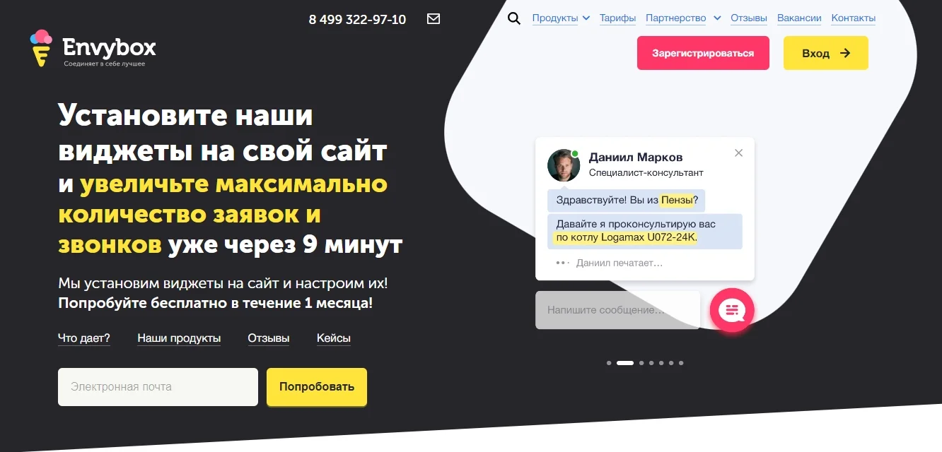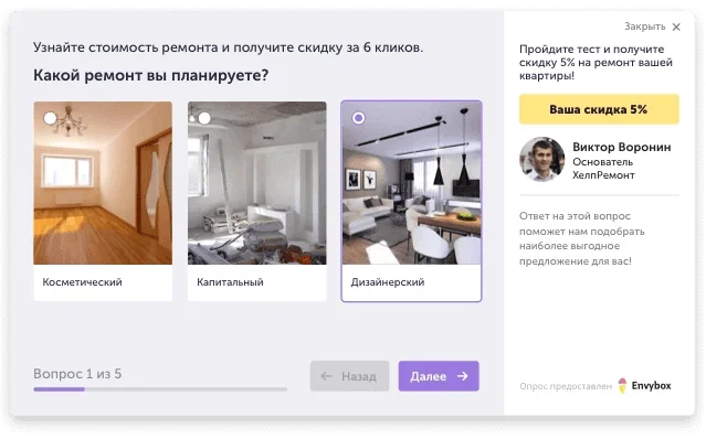 Envybox — набор из 9 конверсионных инструментов для сайта, среди которых есть и квиз.