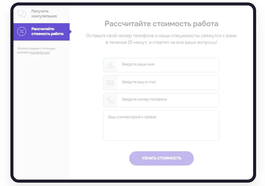 Moclients — один из первых конструкторов квизов. Создатель сервиса — агентство Brandmaker, которое специализируется на комплексном digital-маркетинге.