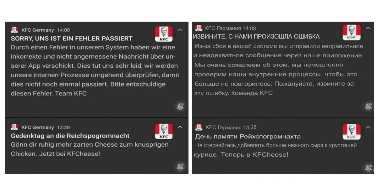 В начале ноября жители Германии получили рассылку, в которой предлагалось отметить годовщину «Хрустальной ночи» сырной курочкой в KFC.