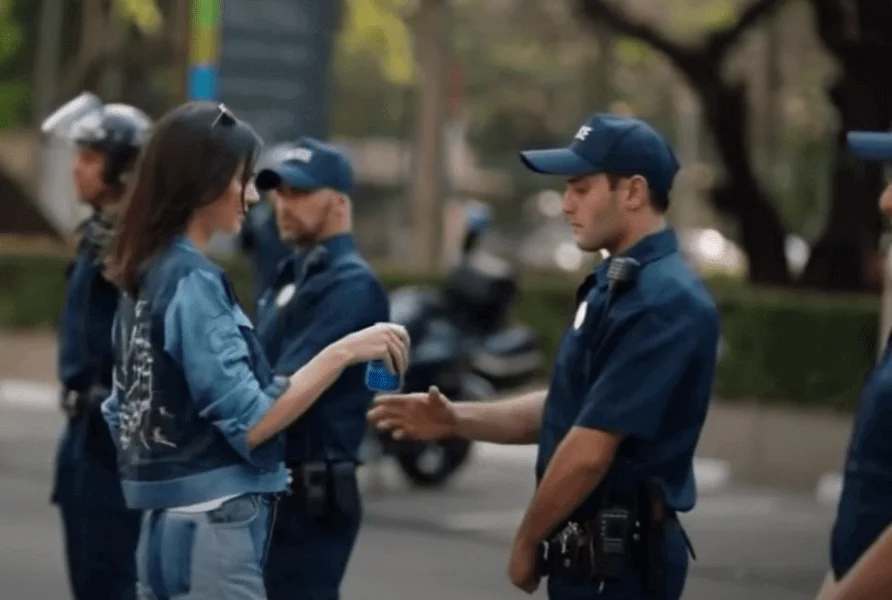 Главную роль в скандальном видео 2017 года сыграла голливудская актриса Кендалл Дженнер. В ролике она играет саму себя: прогуливается по городу с баночкой Pepsi, видит на улице митинг против расового неравенства и полицейских, которые сурово смотрят на протестующих. Кендалл протягивает одному из копов баночку с напитком — и он смягчается. Мир, дружба, позитив и happy end.