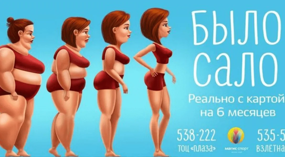 В чём суть. Фитнес-клуб разместил на территории Барнаула несколько рекламных баннеров, на которых были изображены этапы похудения женщины и слоган «Было-сало».