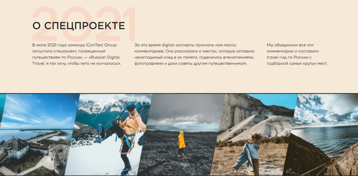 Что за проект. Летом 2021 года в блоге группы компаний iConText Group запустили travel-спецпроект. В нём digital-специалисты могли поделиться рассказом о своих любимых местах для путешествий.