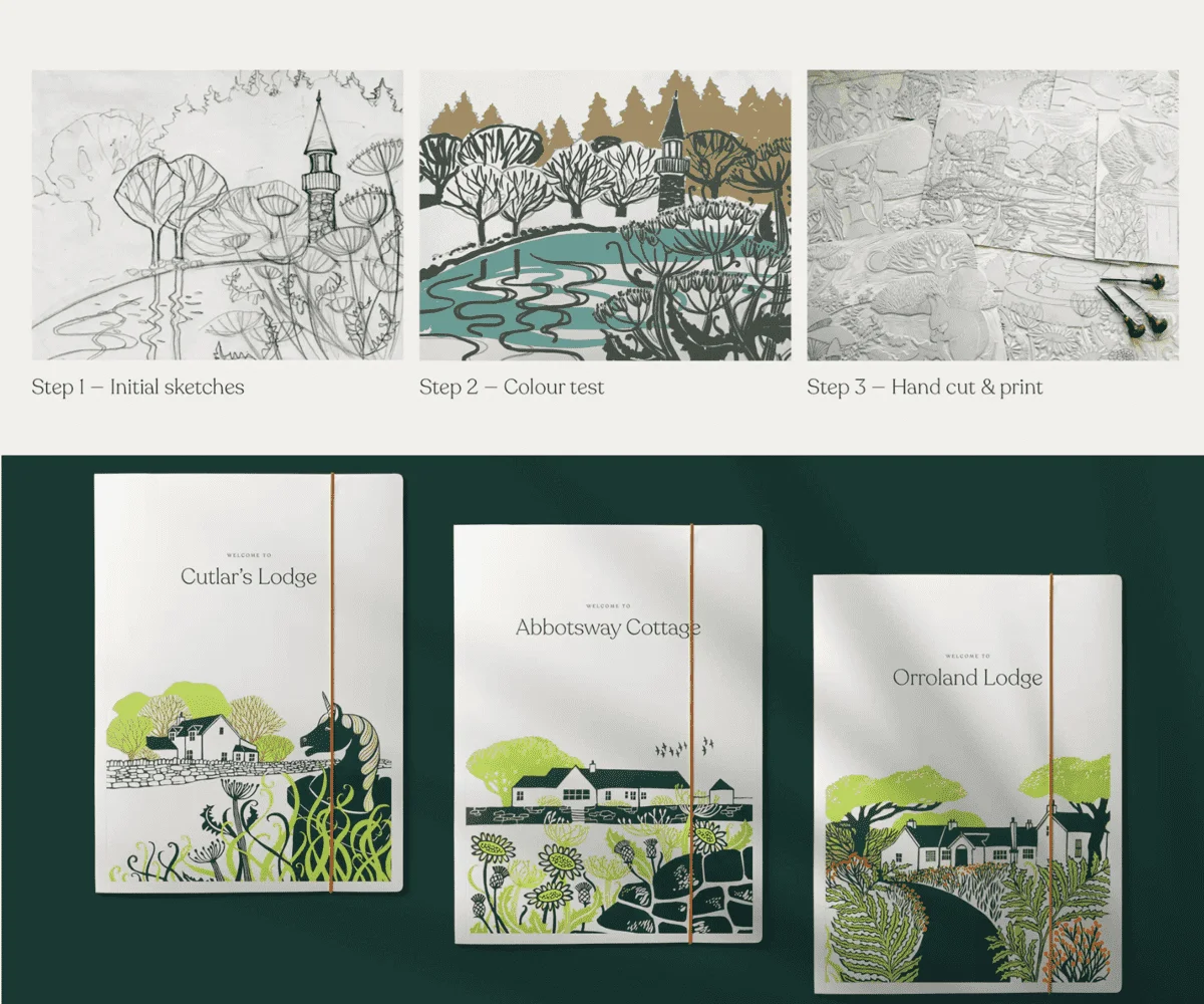 Сегодня традиционные техники встречаются нечасто. Их используют в проектах, где важна аутентичность и ручной след: в премиальной упаковке, коллекционных постерах, арт-коллаборациях и в лимитированных тиражах. Причём это может быть как настоящая печать (например, ксилография или линогравюра, которые затем сканируют и дорабатывают), так и цифровая имитация. В Illustrator или Photoshop дизайнер может создать векторные рисунки с неровными контурами, добавить текстуры и добиться похожего эффекта без печатной матрицы.