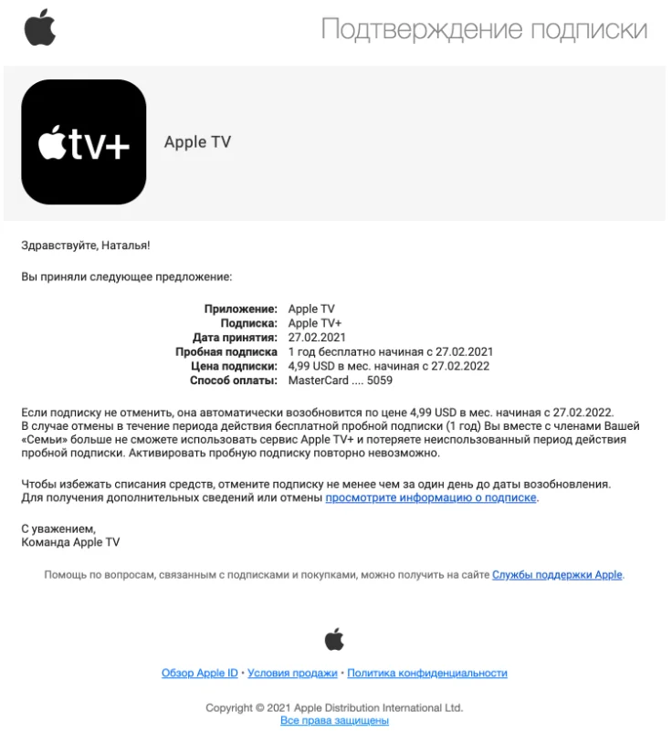 Эти письма подтверждают совершённое действие и сообщают о статусе заявки.