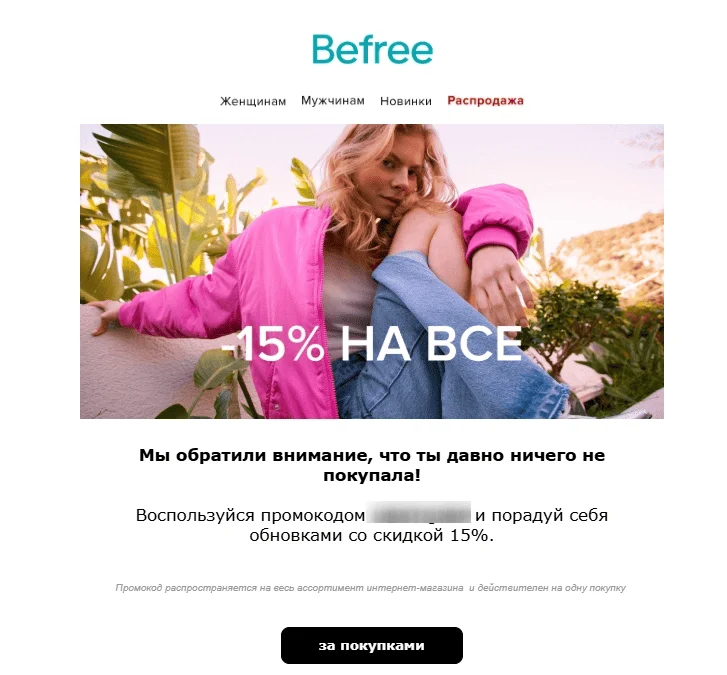 Реактивационные письма. Отправляются, когда пользователь потерял интерес к компании: долго не открывает рассылки, не заходит на сайт, не совершает заказов. Такие письма решают задачу возврата «уснувшего» подписчика, чтобы вновь привести его к действию.