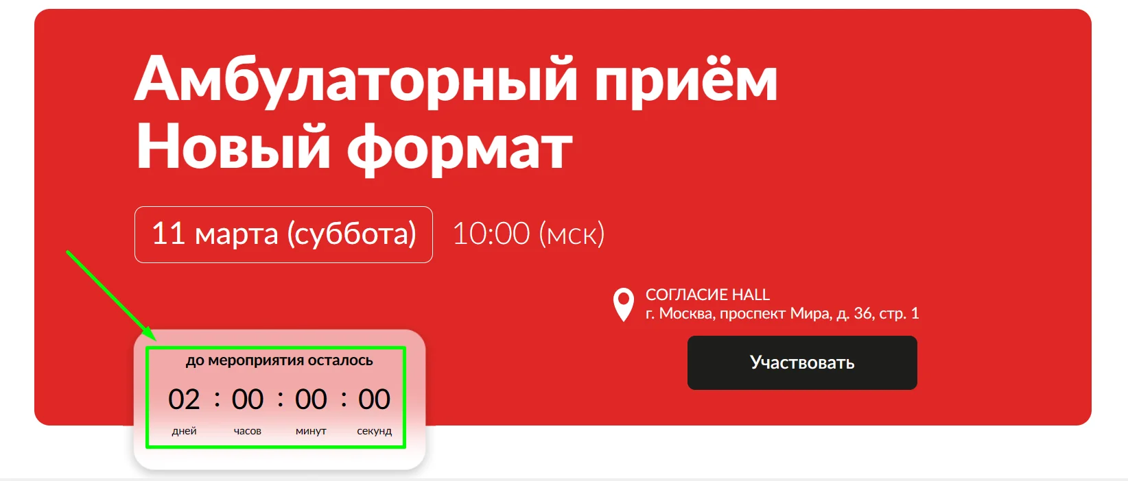 Именно поэтому на лендингах часто устанавливают таймер обратного отсчёта. К примеру, «До окончания регистрации на вебинар осталось 8 часов».