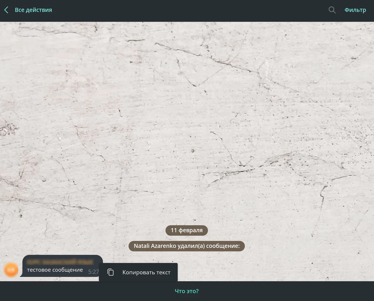 Обратиться за помощью можно и в том случае, если сам администратор удалил сообщения. При активной жизни канала может сложно найти нужный текст. В такой ситуации можно воспользоваться фильтром — открыть историю действий, нажать на «Фильтр» в верхней части интерфейса и в открывшемся окне отметить «Удалённые сообщения».