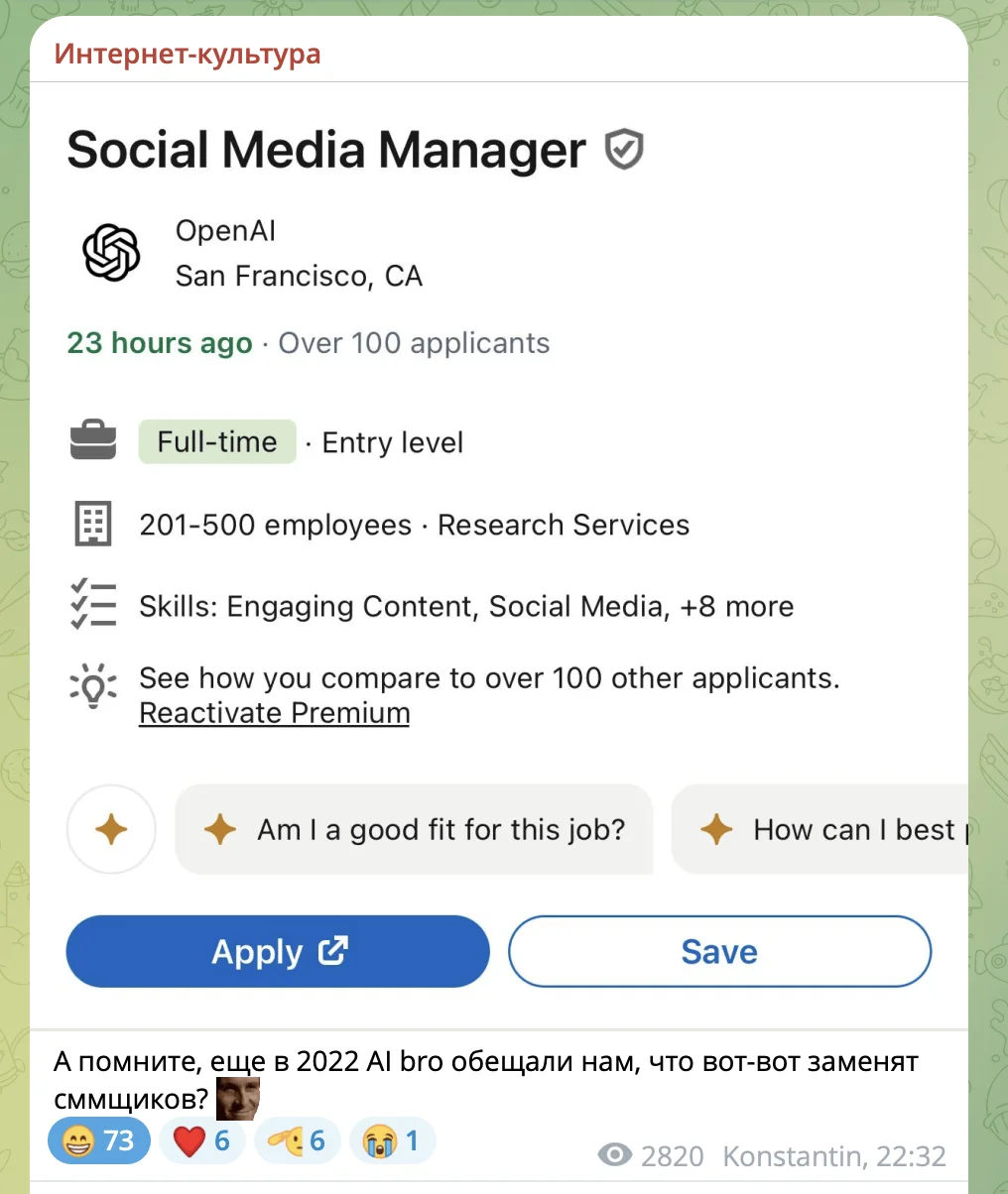 Время шло, споры вокруг генерации не утихали, курсы по нейросетям появлялись, как грибы. Но за два года активного хайпа нейросети не заменили ни сммщиков, ни дизайнеров, ни видеомейкеров. И я вам попробую это показать с помощью простых наблюдений.