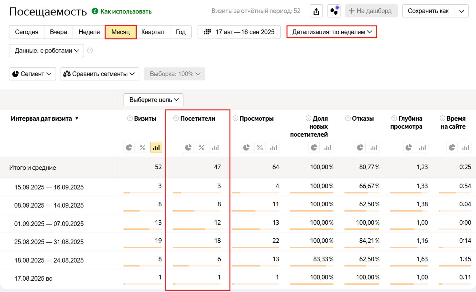 Важна и динамика — хорошо, если количество уникальных посетителей растет. А вот если статистика ухудшается — стоит найти причину, заняться оптимизацией, скорректировать стратегию.