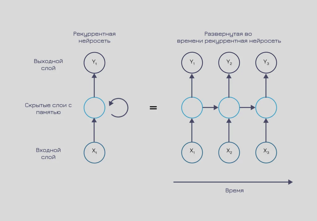 Рекуррентные нейросети (RNN) запоминают последовательности данных. Отличаются от других типов нейросетей тем, что могут учитывать информацию из предыдущих шагов обработки данных. Если говорить проще, у таких нейросетей есть память. Поэтому они подходят для задач, где важно учитывать предыдущую информацию. Например, распознавать речь, переводить и писать тексты.