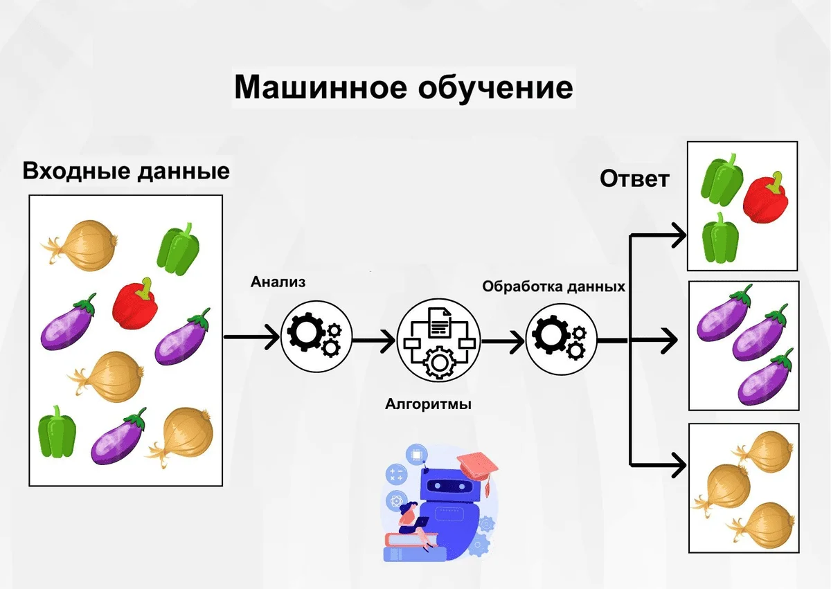 Чтобы обучение прошло успешно, программисты пишут специальные алгоритмы — последовательные команды. С помощью алгоритмов ИИ понимает, откуда брать данные и как с ними работать.