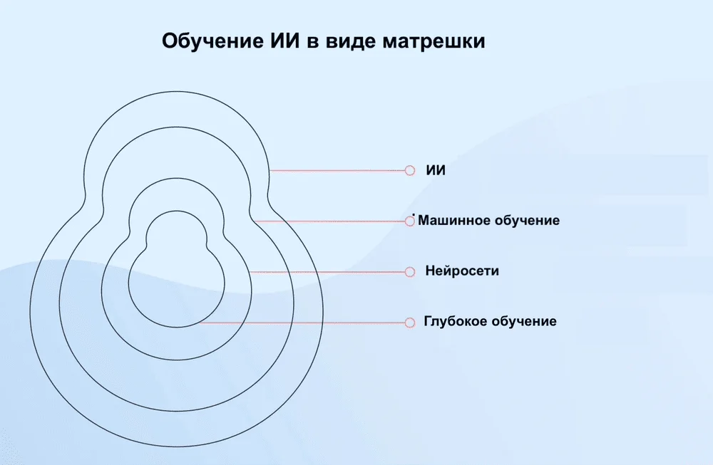 Для тренировки ИИ используют машинное обучение (Machine Learning) и глубокое обучение (Deep Learning).